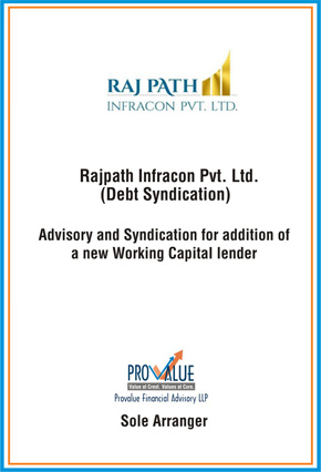 Description: Rajpath had a sole banking relationship with a PSU bank for over 14 years and addition of a new banker was desired to diversify the financing risk as well as lowering cost of capital. Provalue helped the company add a new Private sector bank to its working capital financing portfolio.